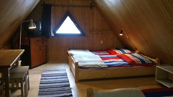 Drugie piętro: poddasze - pokoje wykończone w drewnie, jeden 2-osobowy i jeden 4-osobowy, łazienka z prysznicem i ubikacją.